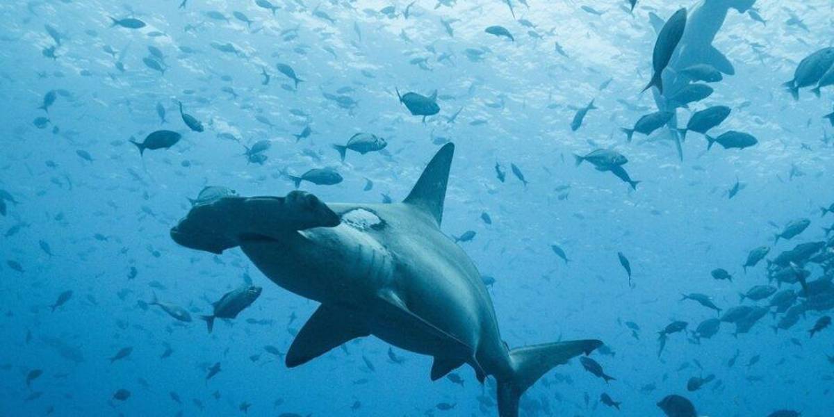 Un tiburón martillo cerca de la isla Darwin, en el norte de Galápagos.( )