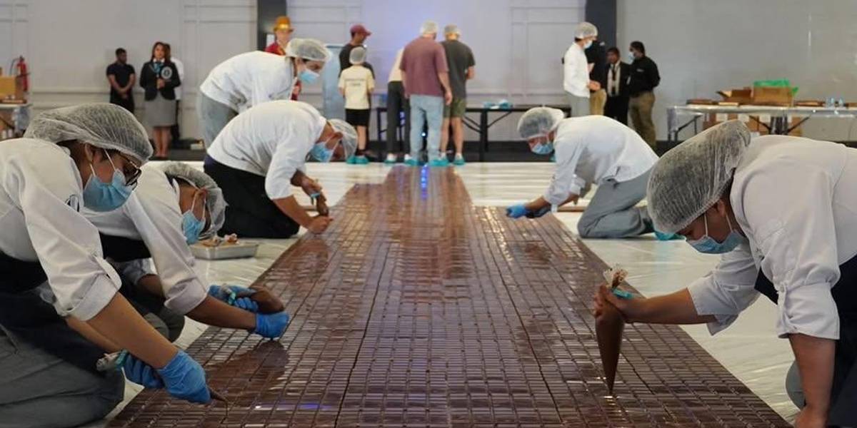 La hazaña tuvo lugar en el Centro de Convenciones de Guayaquil y fue liderada por el chef pastelero ecuatoriano Daniel Ampuero, quien describió el evento como “una hazaña que pone a Ecuador en lo más alto”. Este logro contó con la colaboración de marcas como Blue Stripes Cacao, BelaCuisine, Durán Cocoa, Charito Eventos y OP Eventos.