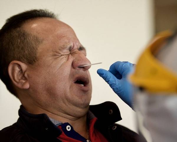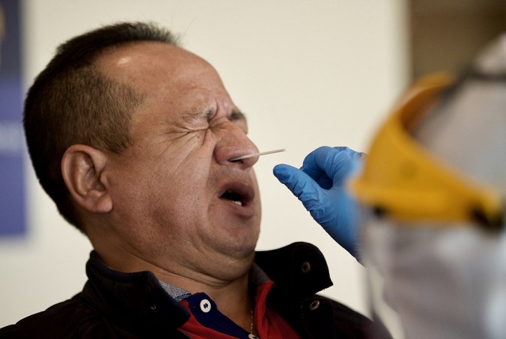 Paciente en el momento de la prueba del coronavirus. Foto: AFP.