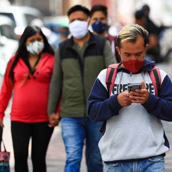 Ciudadanos con tapabocas en una calle de la ciudad de Quito.( )