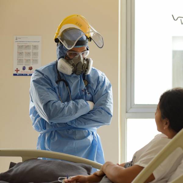Un médico de la Unidad de Cuidados Intensivos (UCI) del hospital "Los Ceibos", de la ciudad portuaria de Guayaquil, que pasa revista a una paciente contagiada covid-19. EFE/Mauricio Torres/Archivo( )
