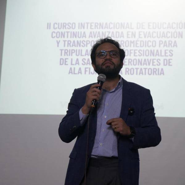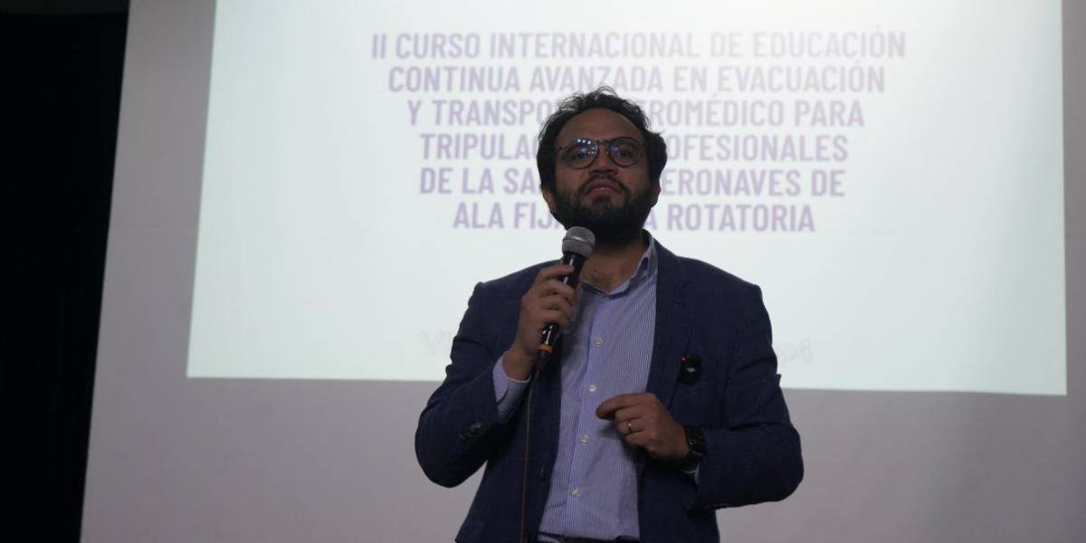 Edgar José Lama durante el Curso Internacional de Evacuación y Transporte Aeromédico para Tripulación y Profesionales de la Salud en Aeronaves de Ala Fija y Ala Rotatoria el 19 de mayo del 2025.( )