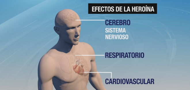El consumo de heroína ataca directamente zonas del cerebro relacionadas a los sistemas: nervioso, respiratorio y cardiovascular.