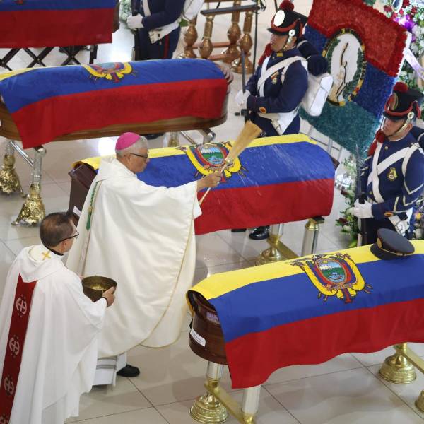 Cuando los féretros de los militares llegaron a Quito, fue indicado que el presidente Daniel Noboa regresaba a Ecuador la madrugada de este domingo, de la gira de Europa y Asia, por lo cual se esperaba su asistencia a la misa.
