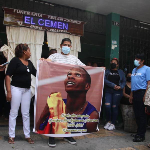 Ecuador está de luto. Hoy en el sur de la ciudad de Guayaquil, en la casa donde vivió un tiempo el velocista Álex Quiñónez, se velaron sus restos antes de su partida a Esmeraldas. Así, escenas de dolor y rostros empañados fueron los momentos que se vivió este sábado 23 de octubre.