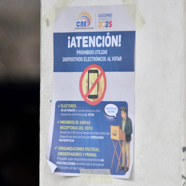 Manta, 13 de abril del 2025 | El cartel con información de la sanción por tomar foto al voto. ( )