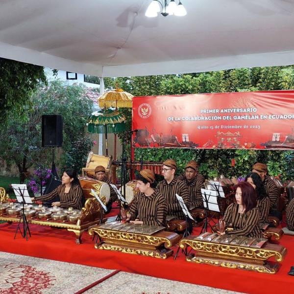 La Embajada de Indonesia en Quito celebró el primer aniversario de la existencia del Gamelán en Ecuador el 15 de diciembre de 2023. El evento, que se llevó a cabo en la Residencia del Embajador, contó con la participación de funcionarios, embajadores, empresarios y amigos ecuatorianos de la Embajada.