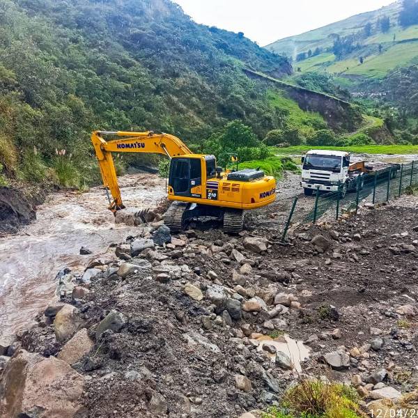 Imagen de una retroexcavadora y un camión en una comunidad de Colta, en Chimborazo.( )