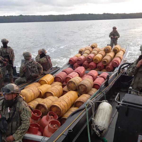 La Armada del Ecuador, en coordinación con la Fuerza de Tarea Conjunta Esmeraldas, encontraron una embarcación con 190 cilindros de GLP que se encontraba cerca de la ribera, en el sector de Limones.