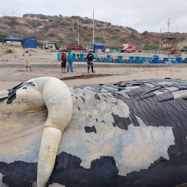 Una ballena de aproximadamente 20 metros de longitud apareció muerta en la playa de Santa Marianita, en Manta, la madrugada de este martes 5 de agosto, este hallazgo fue realizado por habitantes locales, alrededor de las 04:00, según informó Miguel Manzo, funcionario del área de Bienestar Animal del Municipio.