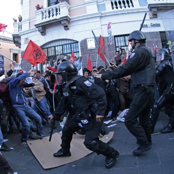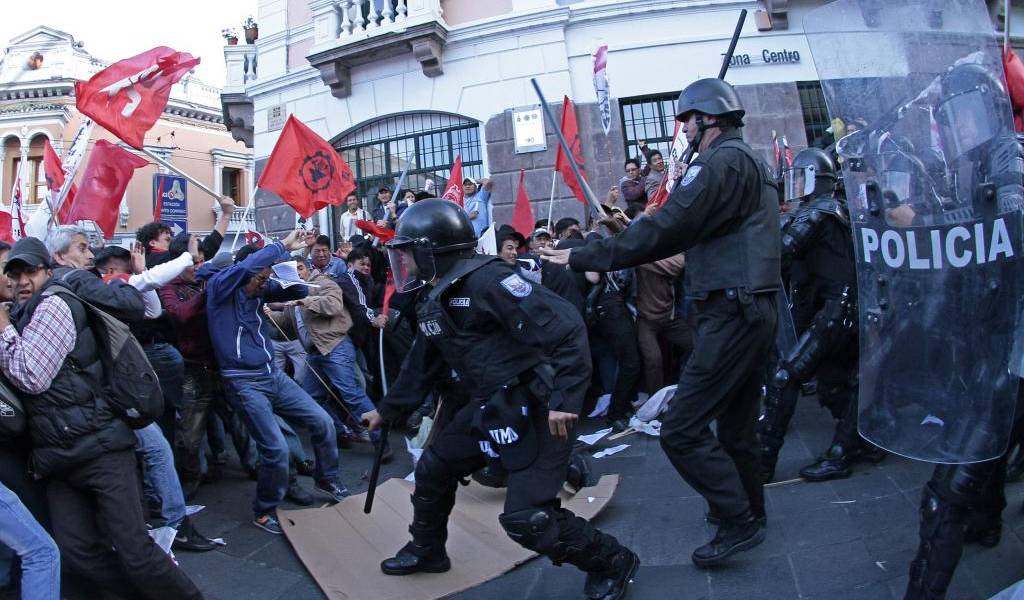 Los incidentes empezaron cuando la policía impidió el acceso de los trabajadores al palacio de Carondelet. Los uniformados colocaron vallas de metal y acordonó los principales accesos a Carondelet. En la calle Guayaquil y Chile, los dirigentes trataron de convencer a la fuerza pública para ingresar a la plaza de la independencia.