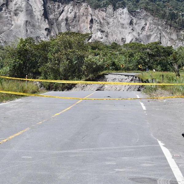 Carretera del municipio El Chaco destruida por la erosión. Foto: EFE/ Cortesía Municipio El Chaco