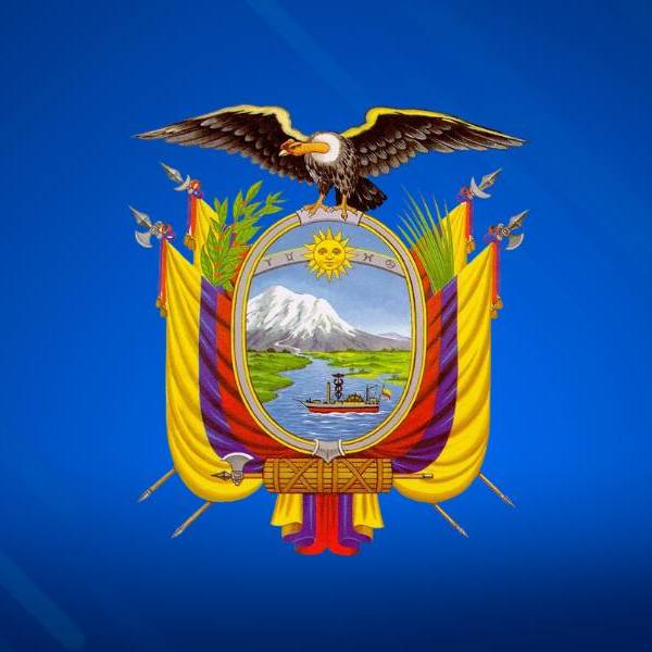 De nuestro país dijo que el escudo destaca "por la riqueza de sus elementos naturales y geográficos en un diseño de óvalo tradicional". Entre ellos, el cóndor y el volcán Chimborazo.