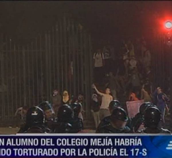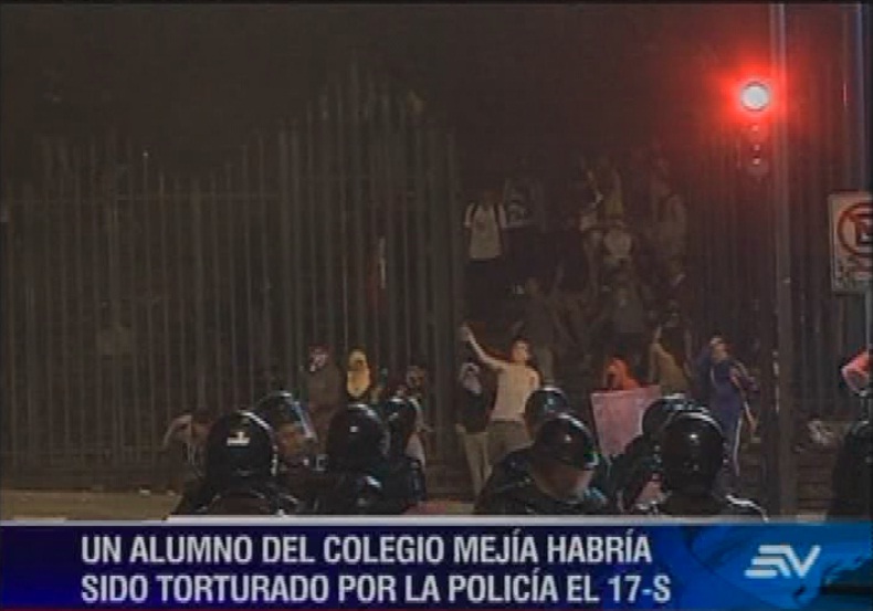 Alicia asegura que el 17 de septiembre, día de las movilizaciones en contra del Gobierno, su hijo fue detenido por uniformados en los alrededores del plantel y supuestamente agredido en la Unidad de Policía Comunitaria del sector. “Le golpean con la moto en la espalda, y le botan boca abajo, ahí es cuando le comienzan a golpear, le pasan la moto, le pisan adrede”, dijo.