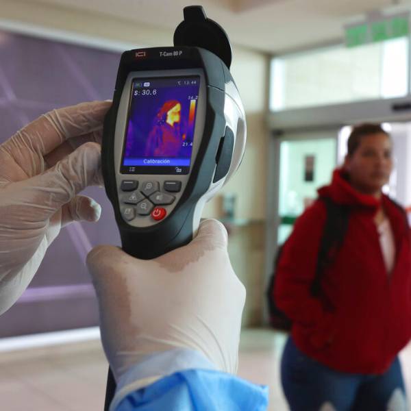 Imagen referencial de la AFP. Un hombre se somete a chequeo médico previo a su ingreso al Palacio de Carondelet.