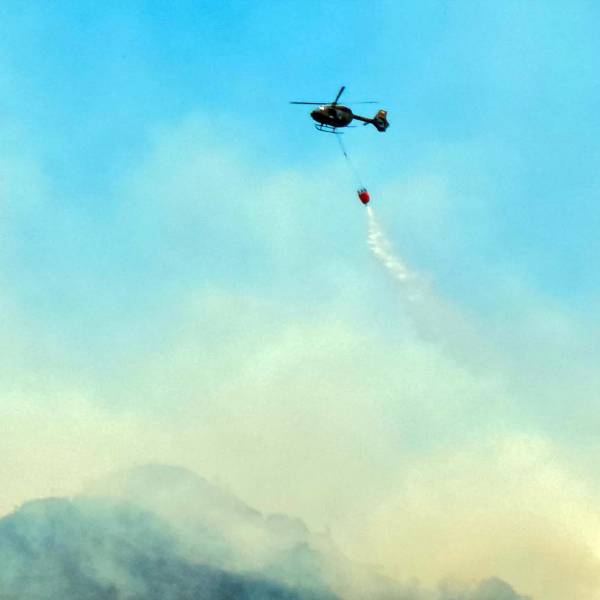 Helicópteros ayudan a sofocar el incendio forestal en el Parque Nacional Cajas. ( )