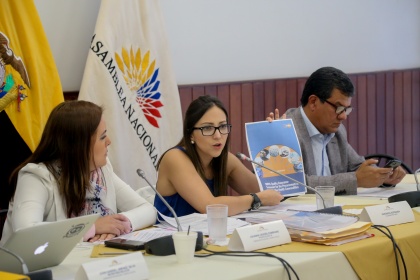 QUITO.- La exfuncionaria presentó las pruebas de descargo ante la Comisión de Fiscalización y Control Político. Foto: Asamblea