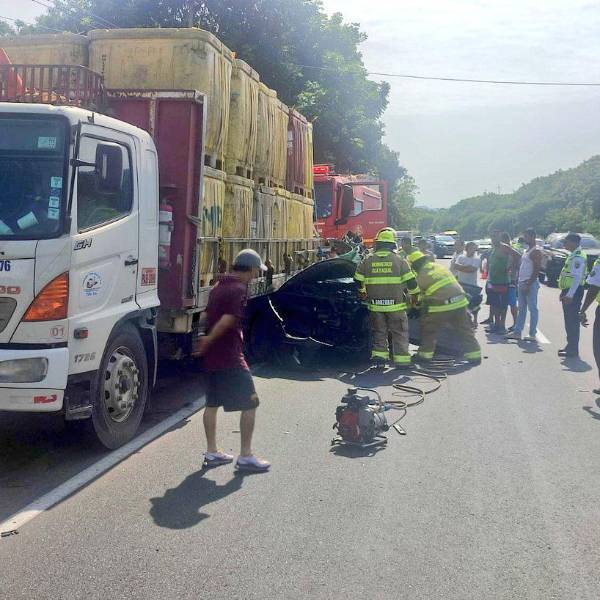 Un fuerte choque entre un auto liviano y un camión dejó al menos una persona fallecida y tres heridas en la vía a la Costa, sentido Guayaquil - Playas, la mañana de este domingo 24 de marzo.