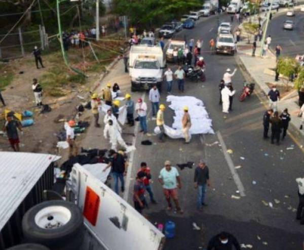 54 migrantes murieron y más de 50 heridos tras camión volcado en Chiapas.
