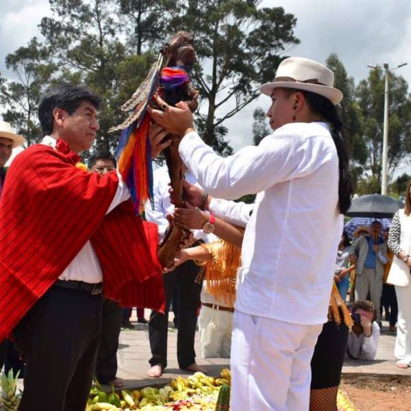 A través de una ceremonia ancestral, que incluía un acto purificación y la entrega del "bastón sagrado de dignidad", la Confederación Nacional de Organizaciones Campesinas, Indígenas y Negras del Ecuador (Fenocin) posesionó, en un acto simbólico, al alcalde electo de Quito, Jorge Yunda.
