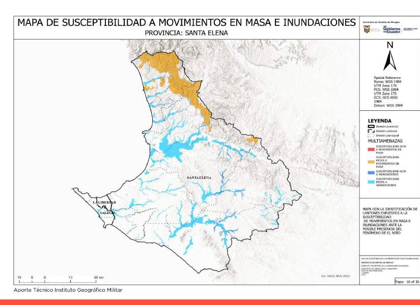 Los más vulnerables al Fenómeno de El Niño viven en 143 cantones de 17 provincias, según un informe de Secretaría de Riesgos. Allí se menciona a la totalidad de Santa Elena, con sus 3 cantones y 11 parroquias.