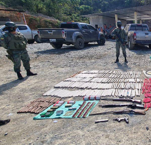 Las Fuerzas Armadas decomisaron más de 700 explosivos, 300 municiones y 4 armas de fuego en un campamento de minería ilegal, ubicado en el sector de San Gerardo del cantón Camilo Ponce Enríquez, en la provincia del Azuay. Según las autoridades, los explosivos estaban listos para ser detonados.
