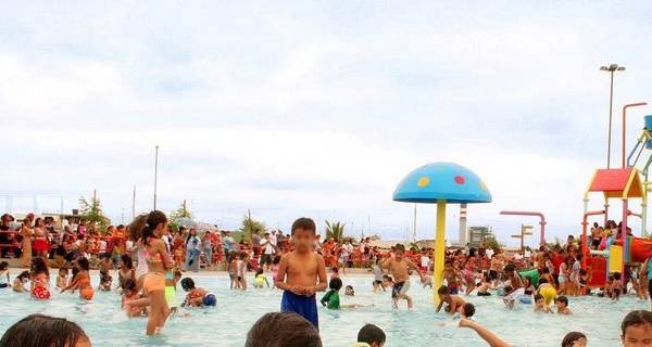 Los niños eran los más ansiosos por que el nuevo parque acuático de Puerto Liza abra sus puertas.