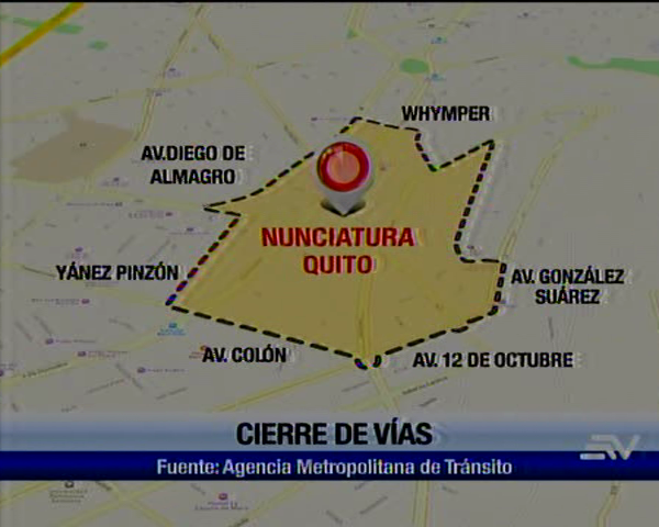 QUITO.- 6 vías alrededor del recinto estarán cerradas al paso vehicular durante la visita de Francisco. Foto: Captura Video.
