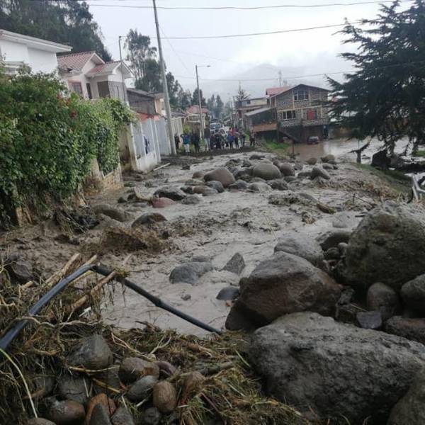 Se trata del río Cushcurrumi, afectando a una vía de segundo orden. La cartera de Riesgos indicó que coordina la atención con la Policía, Bomberos y el municipio.