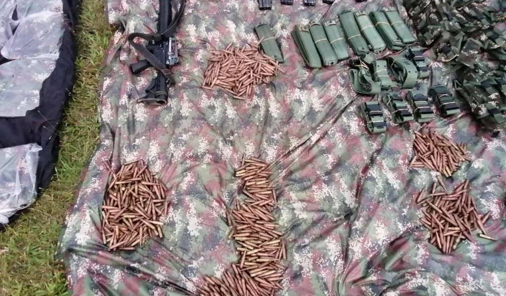 El fin de semana encontraron armas y municiones en tres bases clandestinas montadas en Putumayo. Foto: Twitter
