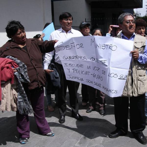 En los exteriores de la dependencia, familiares de los implicados exigían los derechos de guías y policías. Jaime Pillajo, familiar de una de las guías, argumentó que existen 20 guías para más de mil presos, que laboran sin ningún armamento, y calificó de “injusta” la implicación.