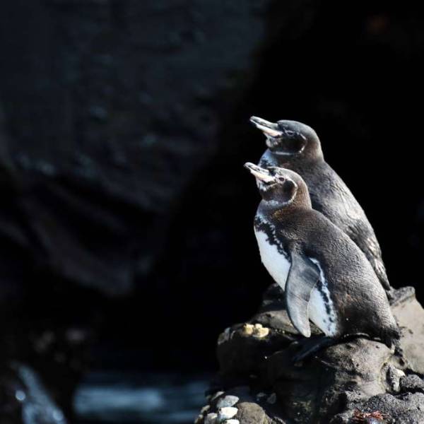 El pingüino de Galápagos es la única variedad que habita y anida sobre la línea ecuatorial y es una de las especies más pequeñas a nivel mundial, mide hasta 35 centímetros de altura, mientras que el cormorán de Galápagos habita en un área muy restringida y es el único en el mundo que perdió su capacidad de volar y desarrolló habilidades para bucear.