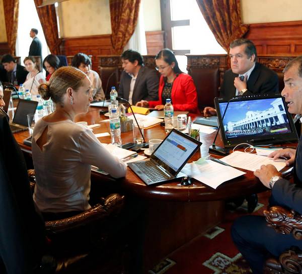 QUITO, Ecuador.- El presidente Correa se reunió con sus ministros del sector social. Foto: Presidencia