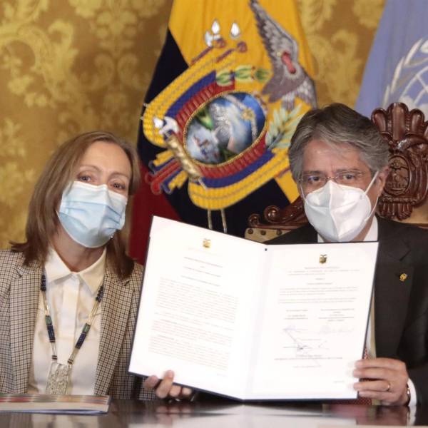 El presidente Guillermo Lasso lo firmó junto a una representante de ese organismo.