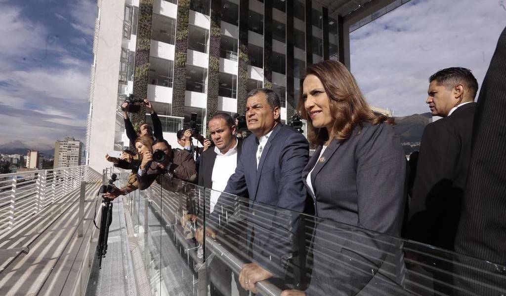 Visiblemente distraído, a ratos, el presidente Rafael Correa entregó la mañana de este 22 de mayo de 2017 la criticada plataforma de gestión financiera, que alberga 12 entidades públicas del sector económico-financiero del país.