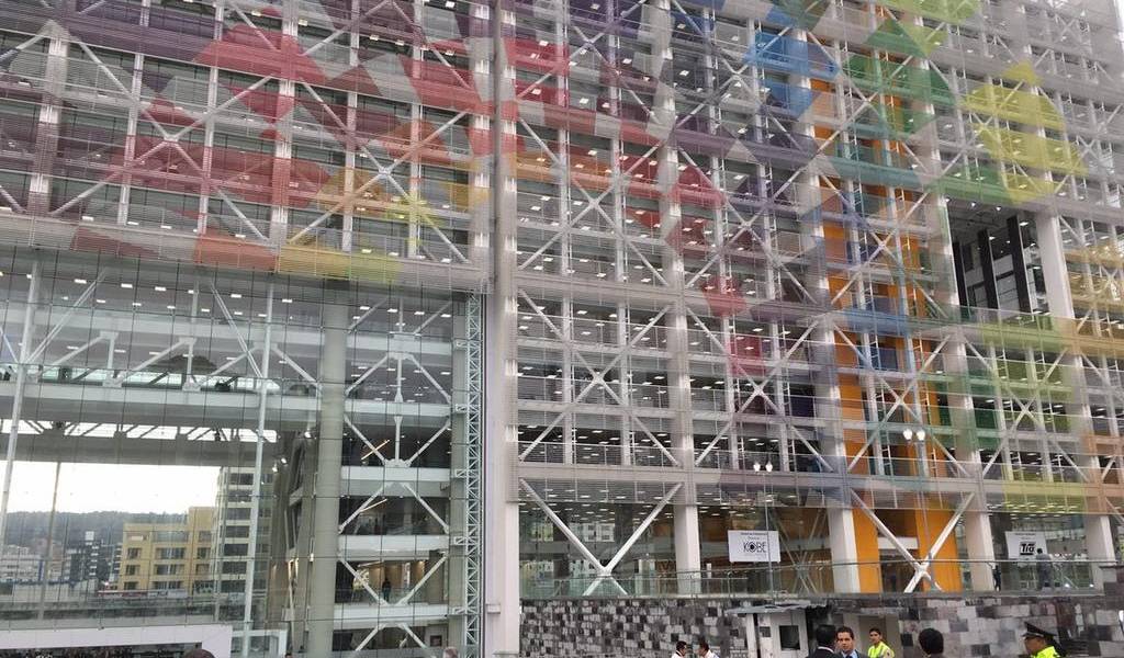 "Es la construcción más grande que se ha hecho en el país en cuanto a edificios, es parte de este programa de modernizar al sector público, hacer más eficiente al Estado. A nivel central, el programa incluía 5 plataformas: financiera, social, sectores estratégicos, producción y gubernamental, se tuvo que prescindir de tres", dijo el presidente por los daños provocados por el terremoto del 16 de abril de 2016 y la situación económica.
