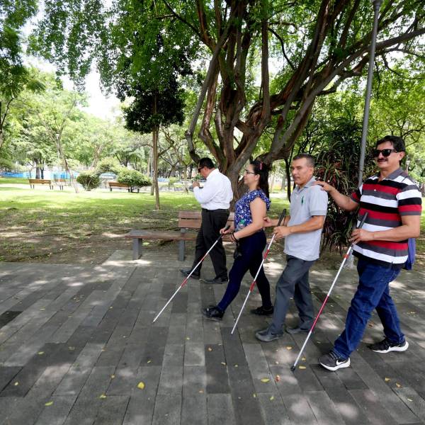 Personas con discapacidad visual en el parque La Rotonda, de Portoviejo. ( )