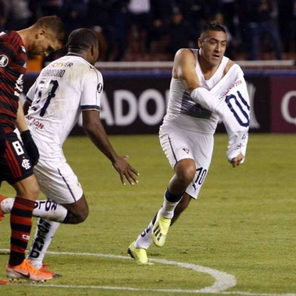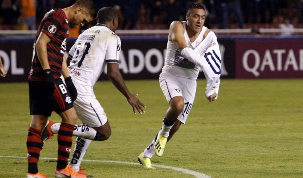 Andrés Chicaiza celebrando el gol ante Flamengo.