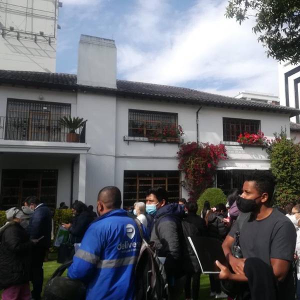 Decenas de ciudadanos amanecieron en los exteriores de la embajada de México, a pesar de la lluvia y el frío. Estaban solos o en grupos familiares formando una larga fila, para esperar a ser atendidos.