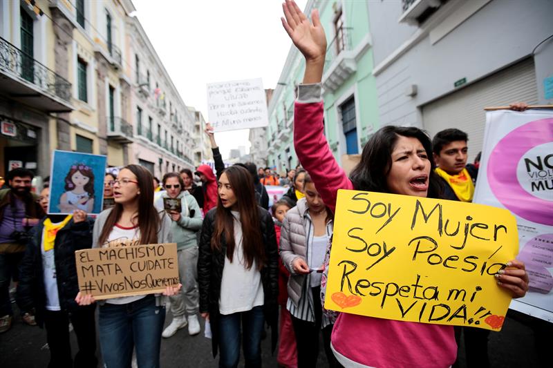 La plataforma "Vivas nos queremos", que aglutina a las grupos feministas y que organizó la marcha, denunció que en Ecuador mueren cada semana cuatro mujeres por violencia de género.