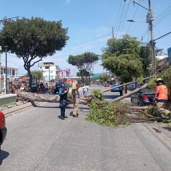 Hasta el mediodía, el árbol caído mantenía interrumpida la circulación vehicular por la avenida Benjamín Carrión.