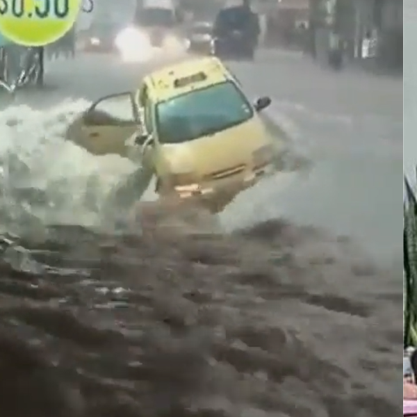 De acuerdo con las imágenes difundidas en redes sociales, se observa un taxi en medio de una corriente de agua que baja a toda velocidad. En su interior está un hombre atrapado.