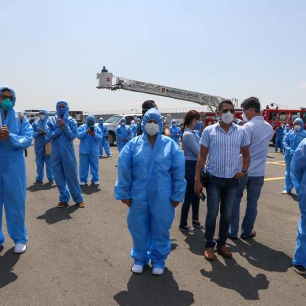 En la mañana de este martes, la alcaldesa de Guayaquil, Cynthia Viteri, estuvo en el aeropuerto de la ciudad junto a los 21 médicos, quienes fueron enviados hasta Quito para ayudar a atender a pacientes con coronavirus.