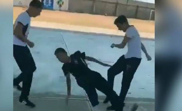 A inicios de febrero en redes sociales comenzaron a circular videos como este, en el que tres estudiantes saltan al mismo tiempo y los de los extremos empujan los pies de su compañero para que caiga hacia atrás, golpeándose la cabeza, de ahí el nombre de "rompe cráneos".