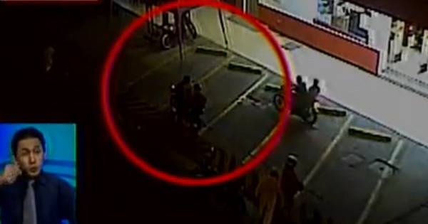 Las cámaras de Ojos de Águila de la Corporación de Seguridad Ciudadana captaron a dos personas que viajaban en una moto, estacionarse a lado de un hombre que portaba el uniforme de una compañía de seguridad.