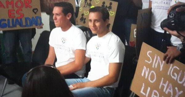 Una pareja de hombres presentó hoy en el Registro Civil de Guayaquil su solicitud para casarse y ser el primer matrimonio gay en el país. Ellos iniciaron una campaña que busca la aprobación del matrimonio civil igualitario.