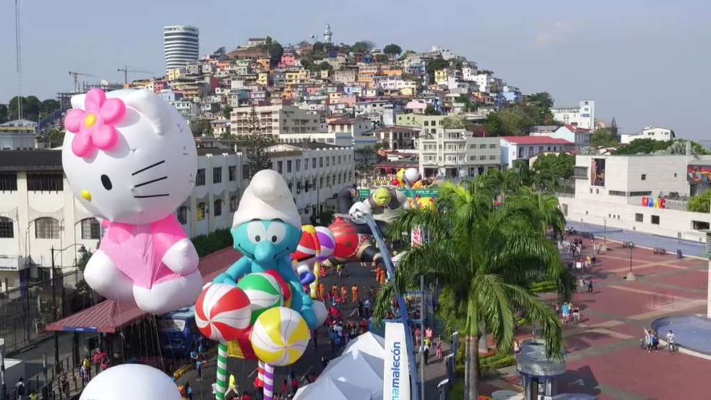 35 enormes figuras inflables alcanzaron entre 18 y 40 metros de altura. Personajes como Kung Fu Panda y Los Pitufos cautivaron al público. Miles de personas se aglomeraron en el centro de la urbe para disfrutar de los gigantes que llenaron de color el cielo de Guayaquil.
