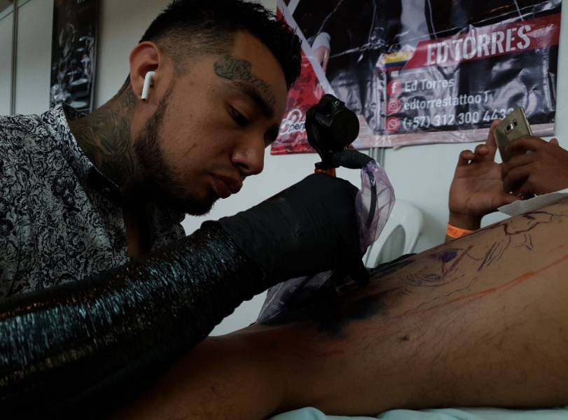 Cristhian Jiménez es tatuador profesional y llegó desde Quito para mostrar lo que puede hacer sobre la piel, puro arte. "Esta es una gran oportunidad para los artistas. Quedan en evidencia nuestras habilidades. Lo mejor de es que se fusiona el arte desde distintos puntos", dijo.