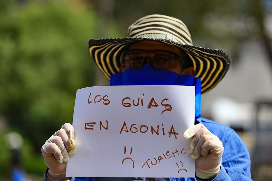 Un grupo de guías turísticos de Ecuador realizó este lunes un plantón en Quito para presionar a las autoridades por ayuda, pues aseguraron que el confinamiento y las medidas de restricción a la movilidad humana por la pandemia del coronavirus, ha reducido a cero esta actividad en el país.