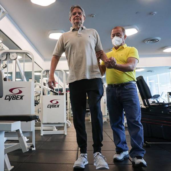 Guillermo Lasso en una sesión de rehabilitación.( )